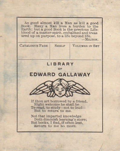 Photo of Edward Gallaway's bookplate appears in Chris’s book on S.W. Erdnase, The Cardsharp and his Book, used with permission.